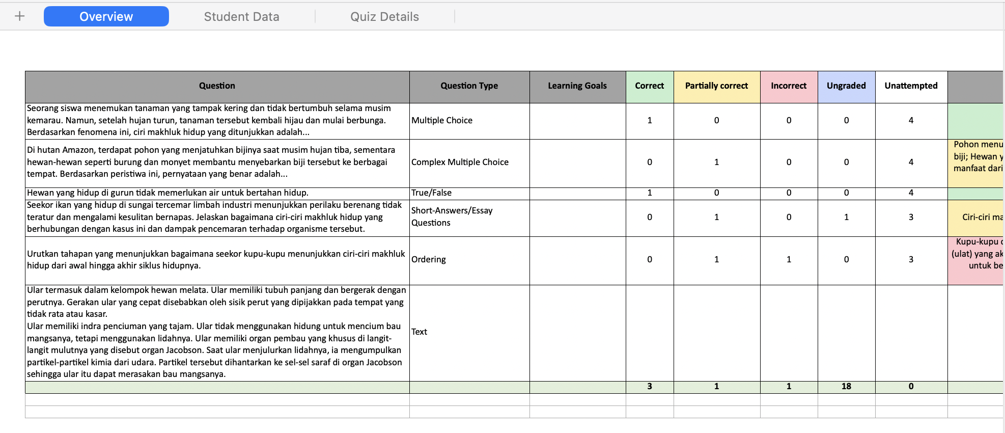 Dengan Analytic Assessment Result, guru dapat mengidentifikasi: